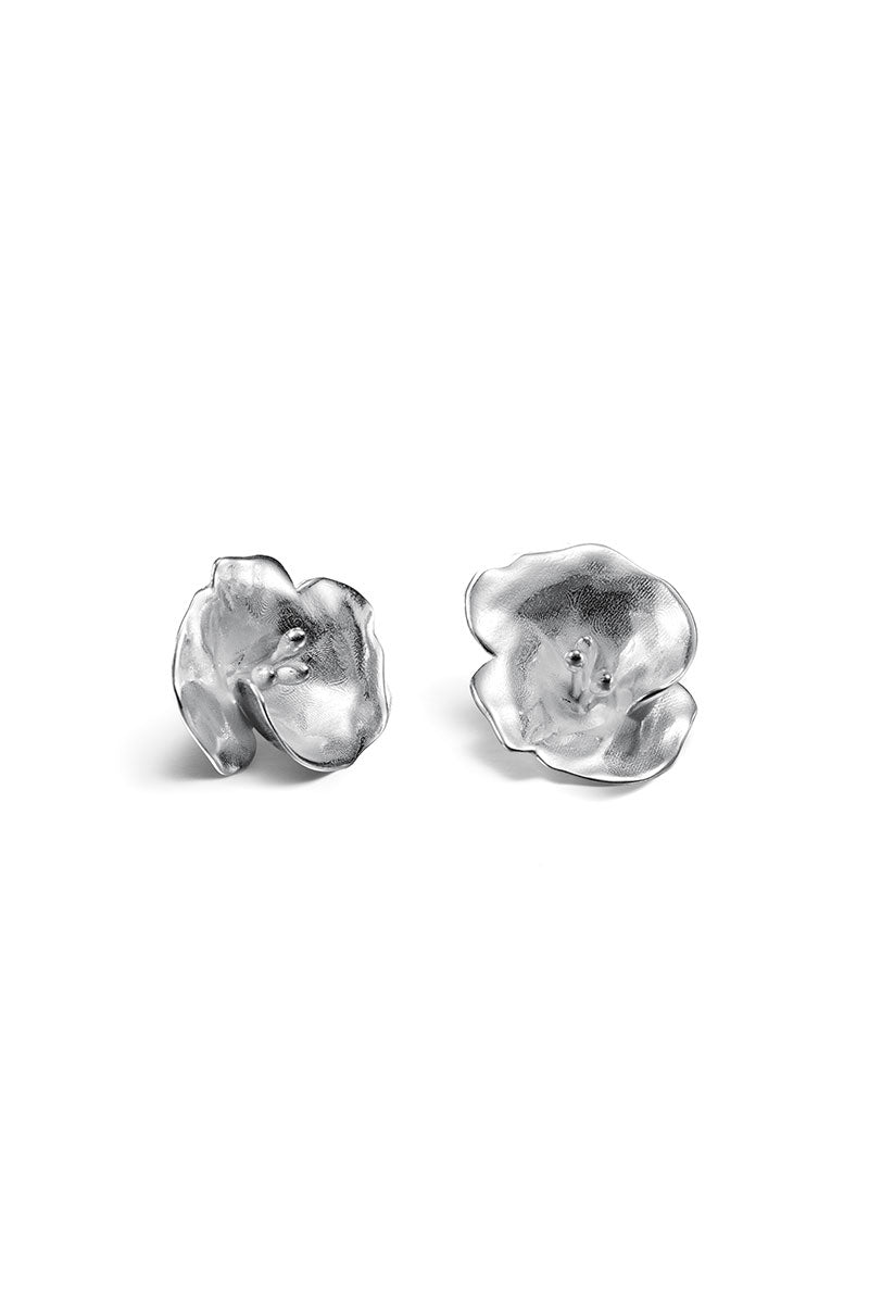 The frail beauty of midsummer roses blooms in the Summer Night Rose silver earrings. Stud fastening. The earrings are not mirror images of each other. Also available in bronze. Kindly note that the silver earrings are slightly smaller than the bronze ones.