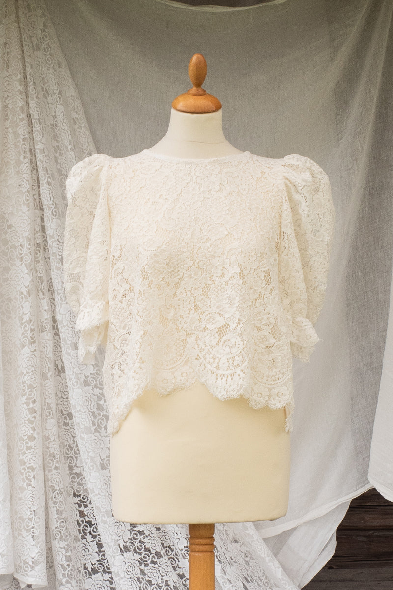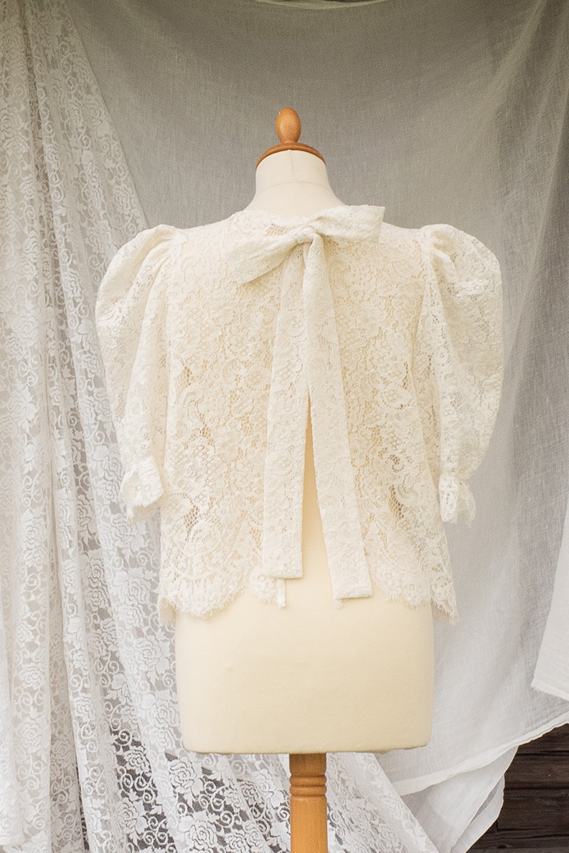 Suosittu puhvihihainen Daisy-paitamme on nyt saatavilla romanttisesta secondhand pitsistä valmistettuna.