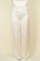 Täyspitkät leveälahkeiset silkkihousut vetoketjukiinnityksellä. Kevyt viskoosivuori.