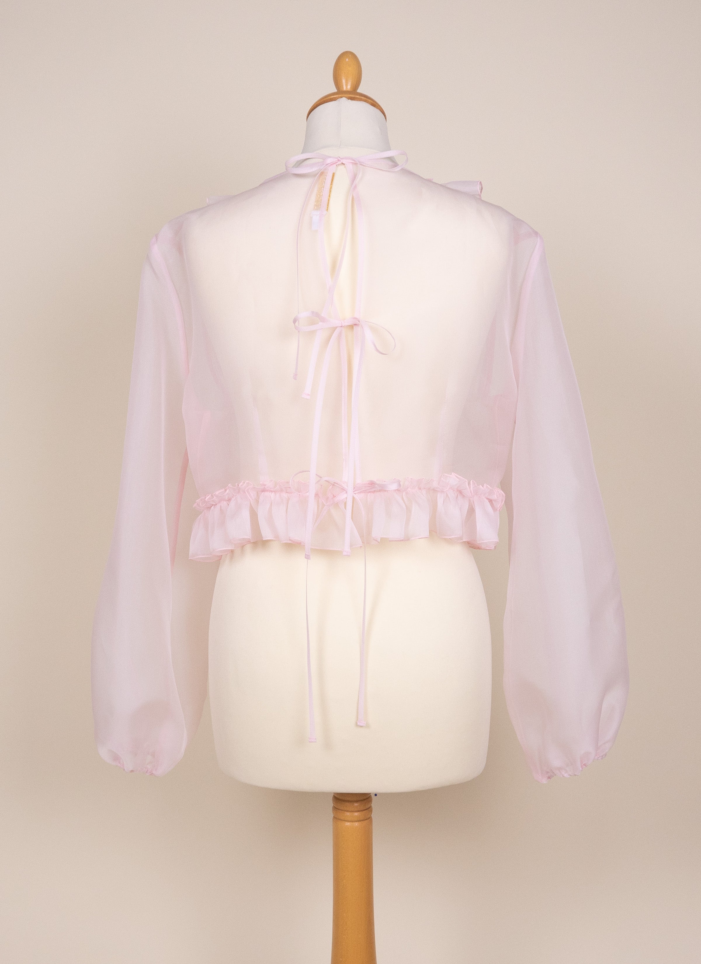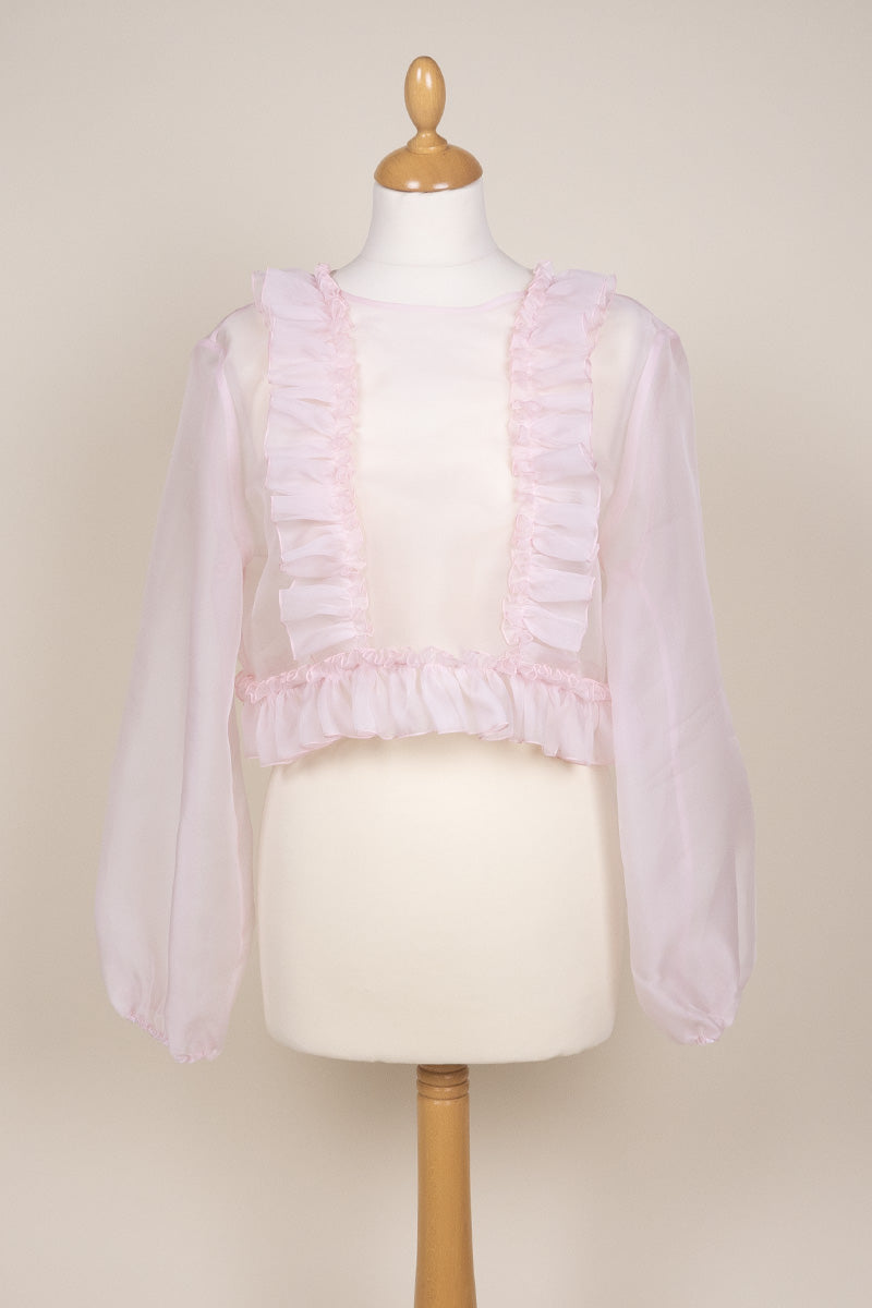 Silk organza blouse with beautiful ruffle details and small bows on the back. Labelled size 42, but fits more like a size 40.