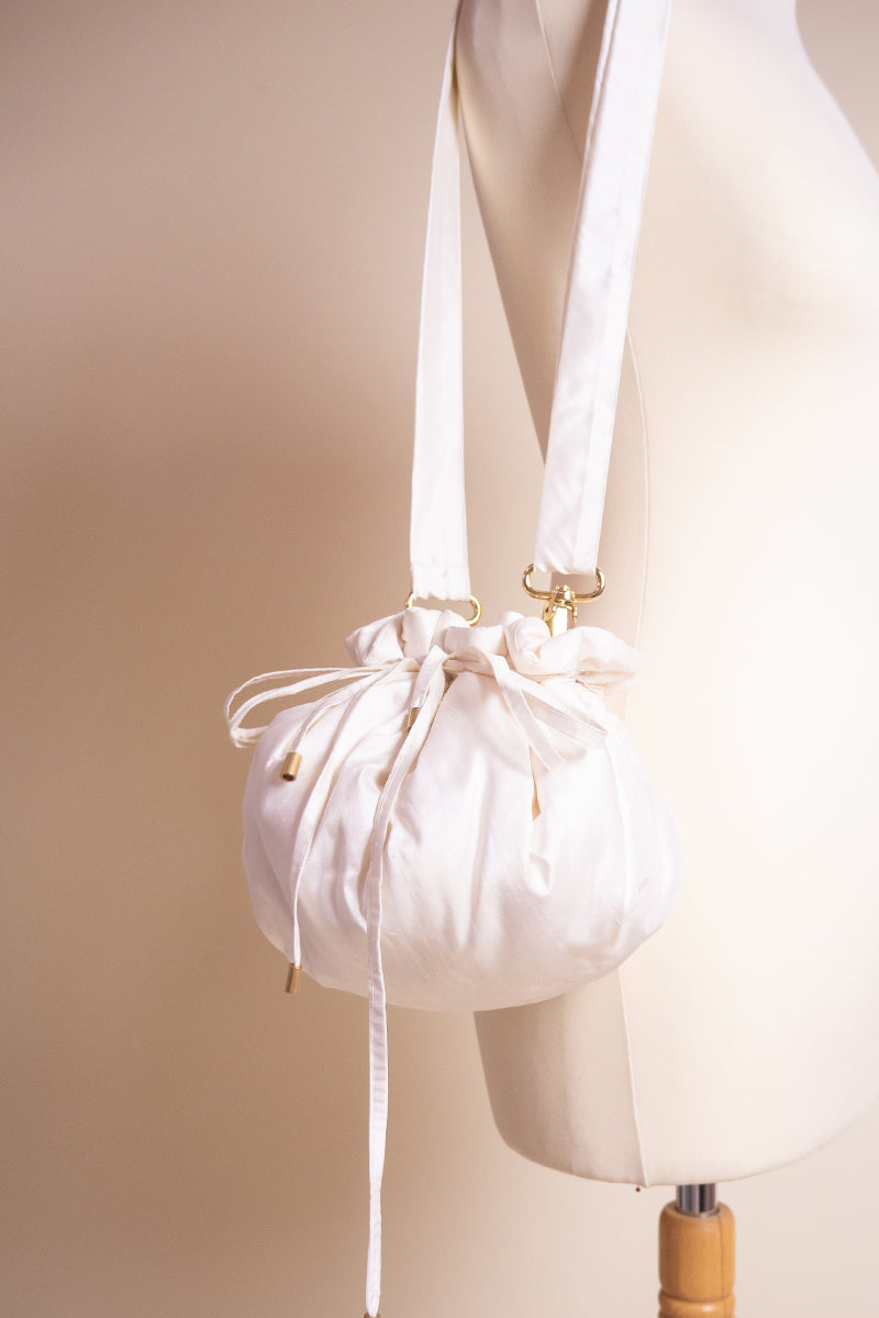 Unique balloon shape and luxurious silk dupion fabric, this pouch is sure to turn heads wherever you go. But it's not just about the style – the practical features of this pouch make it a must-have.