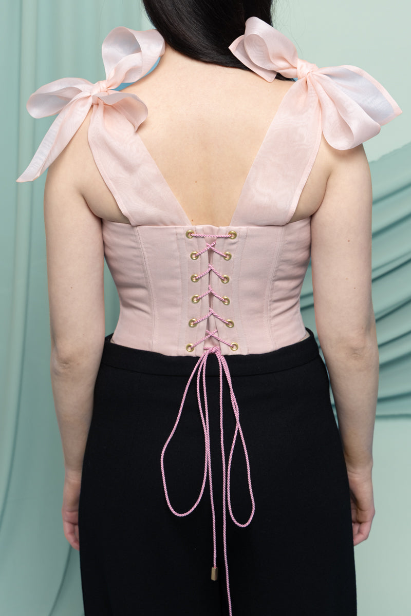The bestselling corset from the Anni Ruuth Bridal collection is now presented in stunning surplus fabrics from Lili Marleena’s treasures. Each piece is unique, and this particular one is crafted from a beautiful powdery pink silk.