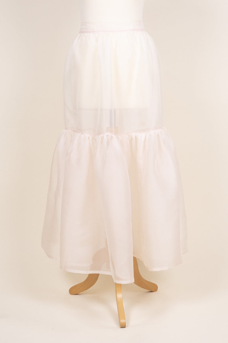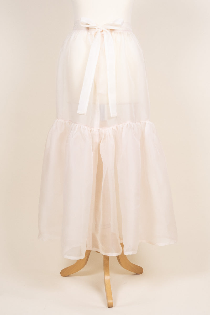 Beautiful silk organza skirt with two layers and laces at the back to tighten the waist to the desired tension. The horizontal seam brings beautiful volume to the hem.